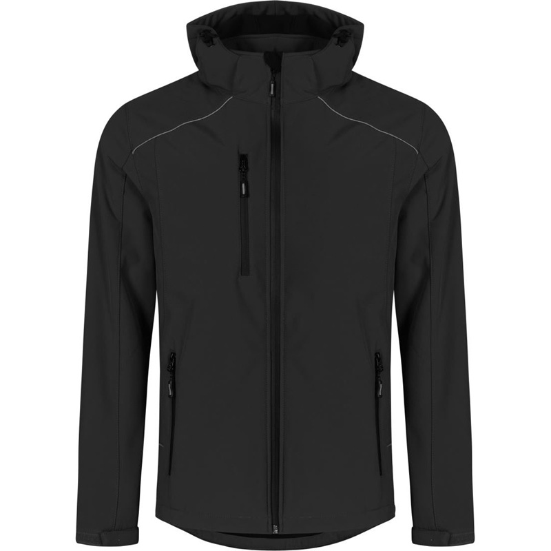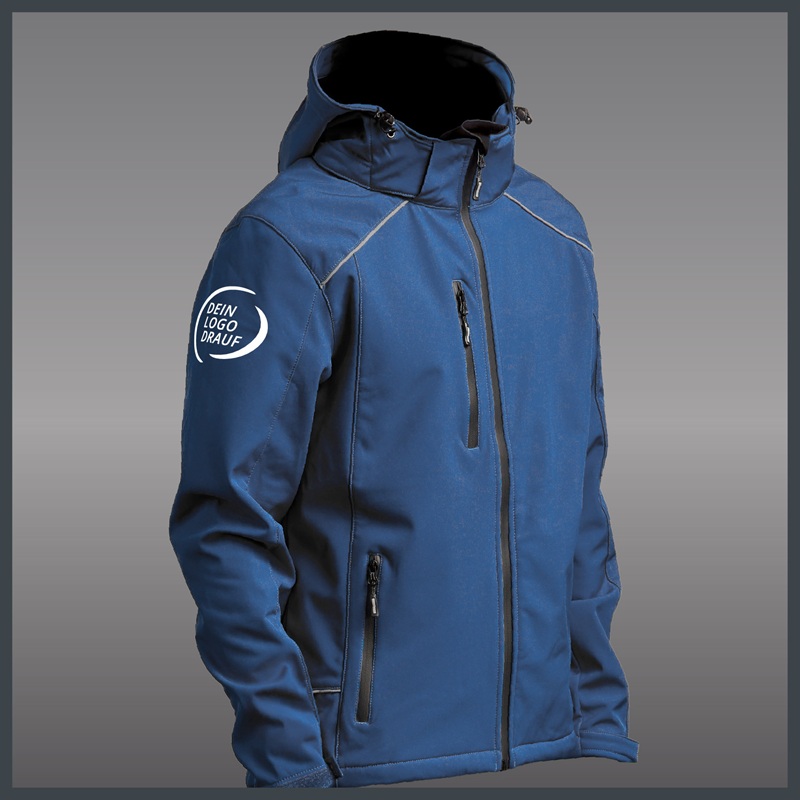 Premium 3-Lagen Softshell Jacke 310g/m² Wasserdicht (8.000mm Wassersäule), wasserdichte Reißverschlüsse, winddicht & atmungsaktiv mit abnehmbarer verstellbarer Kapuze, viele verstellmöglichkeiten, 2 Seitentaschen mit Reißverschluss, Ärmeltasche, Nähte versiegelt, Teilungsnähte, länger geschnittener Rücken mit abgerundetem Saum, eingenähter Schlüsselanhänger in Seitentasche, Reflexpaspelund einer 8.000mm Wassersäule. Atmungsaktives Membran – Winddicht.